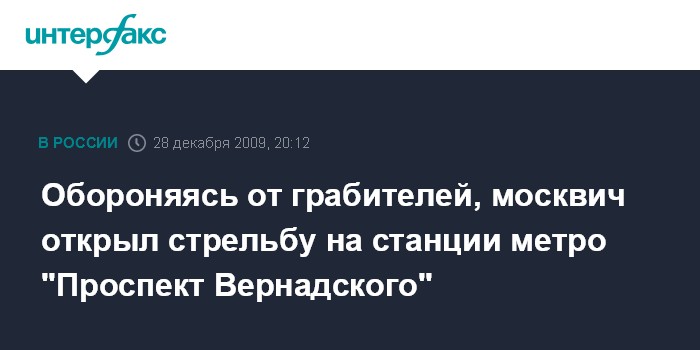 Обороняясь от грабителей, москвич открыл стрельбу на станции метро "Проспект Вернадского"