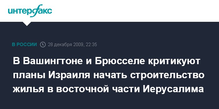 Вашингтон/Брюссель. 28 декабря. ИНТЕРФАКС - США и ЕС в понедельник выступили с критикой в отношении Израиля, власти которого объявили о планах строительства 700 новых единиц жилья в восточной части Иерусалима.