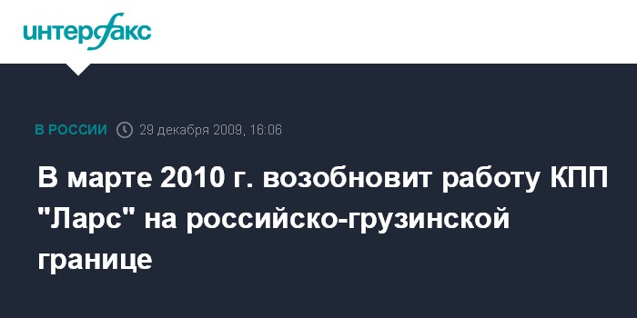 В марте 2010 г. возобновит работу КПП "Ларс" на российско-грузинской границе