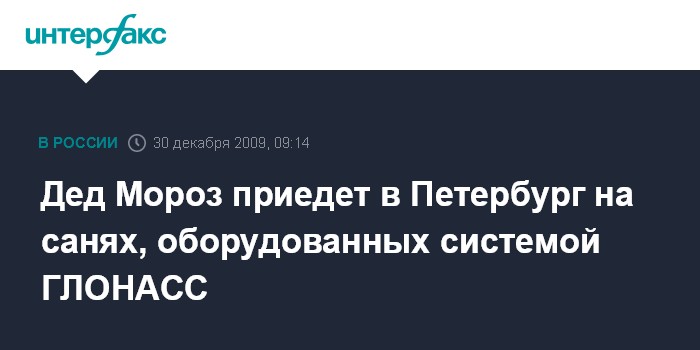 Москва. 30 декабря. INTERFAX.RU - Российский Дед Мороз проедет по Петербургу на инновационных санях в среду, сообщает пресс-служба правительства Вологодской области. "Украшенные сотнями разноцветных огней сани будут заметны издалека, а благодаря навигационной системе ГЛОНАСС любой желающий сможет в режиме реального времени не только узнать точные координаты колесницы, но даже ее скорость передвижения", - говорится в сообщении.