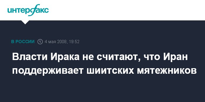 Багдад. 4 мая. ИНТЕРФАКС - Правительство Ирака объявило, что не располагает доказательствами того, что Иран оказывает помощь мятежникам-шиитам, действующим на иракской территории.
