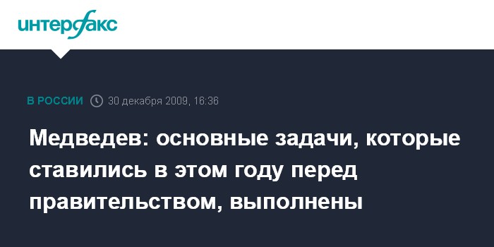 Москва. 30 декабря. INTERFAX.RU – Президент России Дмитрий Медведев считает, что правительство удачно действовало в этом году по преодолению кризиса.