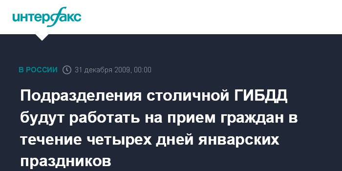 Москва. 31 декабря. ИНТЕРФАКС-МОСКВА - Управление ГИБДД утвердило график работы подразделений столичной Госавтоинспекции по приему граждан во время новогодних праздников, сообщили "Интерфаксу" в отделе пропаганды столичного управления ГИБДД.
