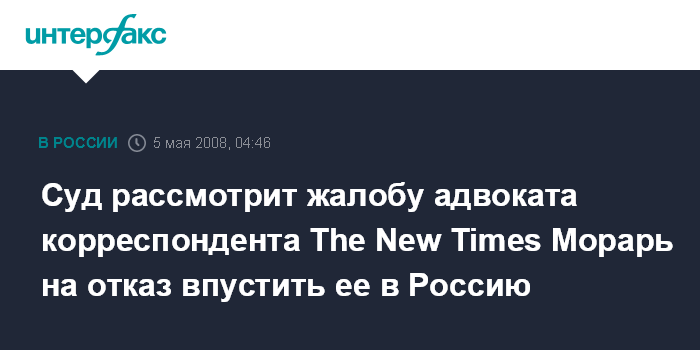 Москва. 5 мая. ИНТЕРФАКС - Мещанский суд Москвы в понедельник, 5 мая рассмотрит по существу жалобу защиты гражданки Молдавии, корреспондента The New Times Натальи Морарь на отказ впустить ее на территорию РФ.