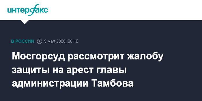 Мосгорсуд рассмотрит жалобу защиты на арест главы администрации Тамбова
