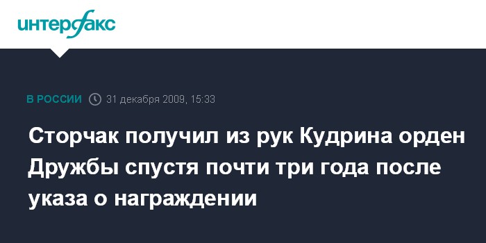 Сторчак получил из рук Кудрина орден Дружбы спустя почти три года после указа о награждении