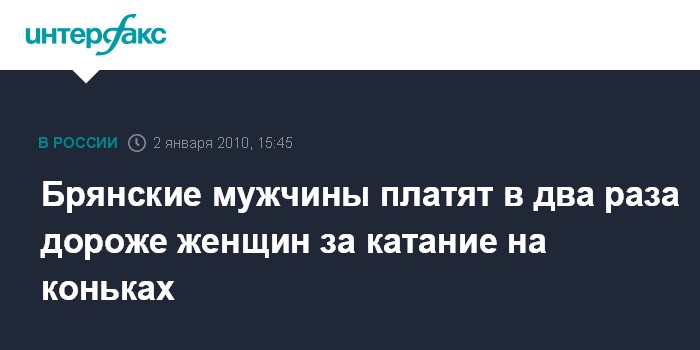 Брянские мужчины платят в два раза дороже женщин за катание на коньках