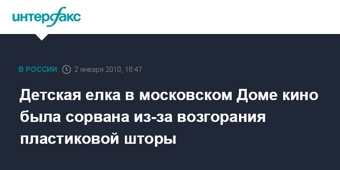 Детская елка в московском Доме кино была сорвана из-за возгорания пластиковой шторы