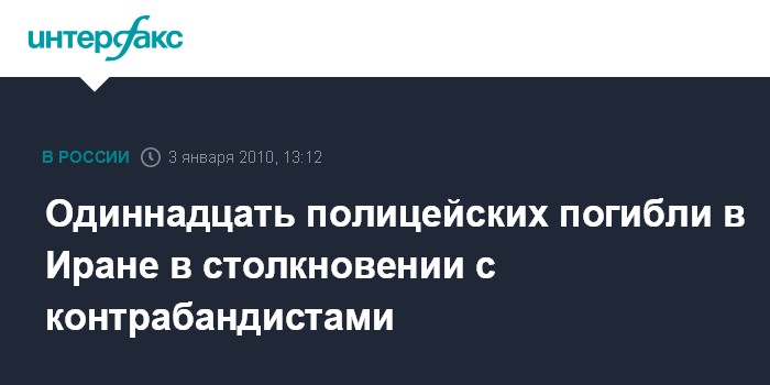 Москва. 3 января. INTERFAX.RU – В Иране в результате вооруженного столкновения с контрабандистами наркотиков вблизи афганской границы убиты 11 полицейских, сообщает британская телерадиокорпорация ВВС.