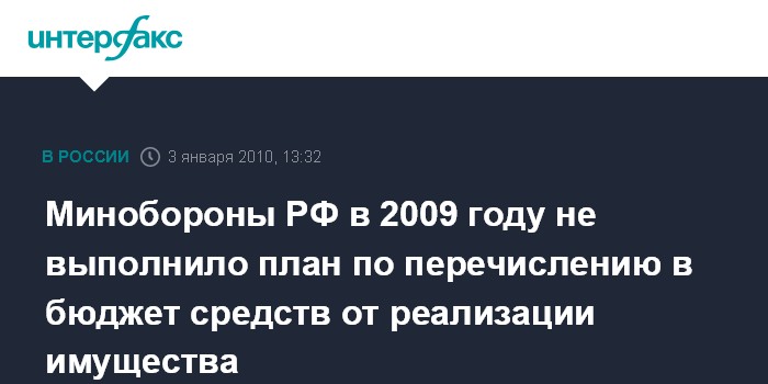 Минобороны РФ в 2009 году не выполнило план по перечислению в бюджет средств от реализации имущества