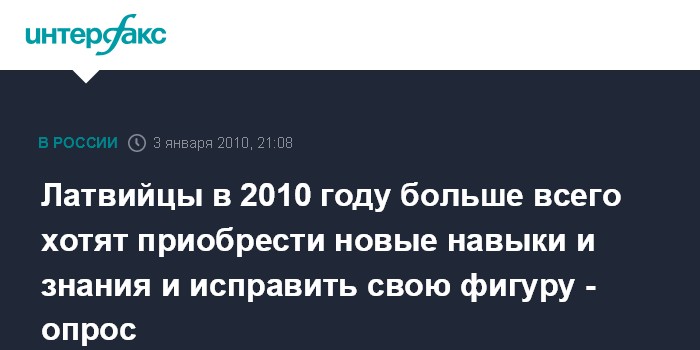 Рига. 3 января. ИНТЕРФАКС/BNS - 47% жителей Латвии полны решимости в 2010 году приобрести новые навыки и знания, например, овладеть иностранным языком, научиться вязать или работать на компьютере, а 43% - больше заниматься спортом и исправить свою фигуру, свидетельствуют результаты опроса, проведенного в декабре Swedbank.