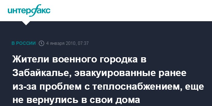 Чита. 4 января. ИНТЕРФАКС-СИБИРЬ - Военные пока не намерены возвращать домой жителей забайкальского закрытого городка "Степь", эвакуированных в местный профилакторий и санаторий из-за аварии в котельной.