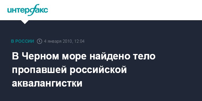 Москва. 4 января. INTERFAX.RU - В прибрежной полосе Черного моря в 10 км на север от села Оленевка (Черноморского района Крыма) 3 января обнаружено тело пропавшей российской аквалангистки.