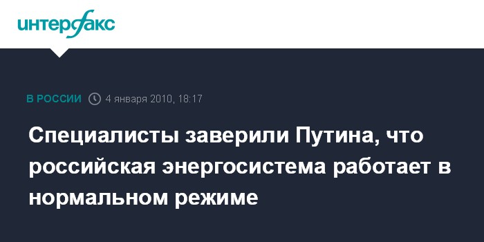 Специалисты заверили Путина, что российская энергосистема работает в нормальном режиме