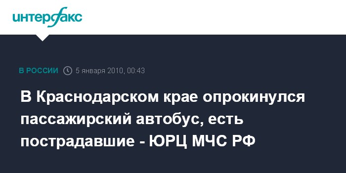 В Краснодарском крае опрокинулся пассажирский автобус, есть пострадавшие - ЮРЦ МЧС РФ