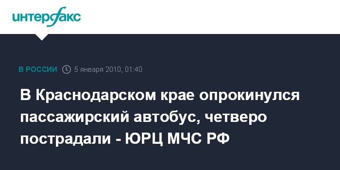В Краснодарском крае опрокинулся пассажирский автобус, четверо пострадали - ЮРЦ МЧС РФ