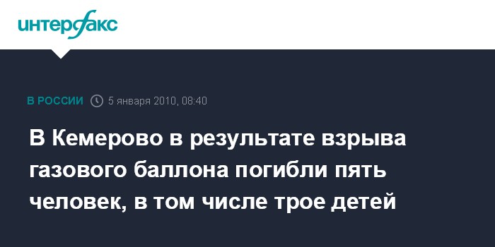 В Кемерово в результате взрыва газового баллона погибли пять человек, в том числе трое детей
