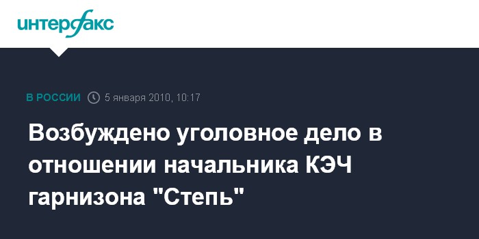 Возбуждено уголовное дело в отношении начальника КЭЧ гарнизона "Степь"