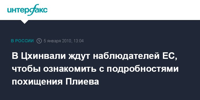 Цхинвали/Тбилиси. 5 января. INTERFAX.RU - Югоосетинская сторона пригласила наблюдателей Евросоюза осмотреть место происшествия в Цхинвали, откуда был похищен гражданин Южной Осетии Геннадий Плиев. Ожидается, что наблюдатели Евросоюза прибудут на территорию Южной Осетии во вторник, сообщил "Интерфаксу" полномочный представитель президента Южной Осетии по постконфликтному урегулированию Борис Чочиев. "Мы препроводим их к месту, откуда был похищен Г.Плиев. Там до сих пор видны следы борьбы, а также кровь", - сказал он. Г.Плиев был похищен около 7:00 4 января в приграничном с Грузией районе Цхинвали Шанхай.