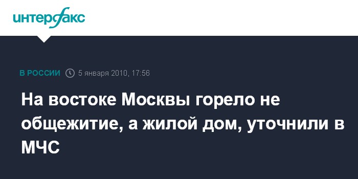 Москва. 5 января. INTERFAX.RU - В главном управлении МЧС России по Москве уточняют, что пожар на Средней Первомайской улице, дом 31/33, корпус 1, произошел не в общежитии, а в жилом доме. На первом этаже здания располагается РЭУ-18 района Восточное Измайлово, где и произошло возгорание", - сообщил "Интерфаксу" во вторник начальник пресс-службы ГУ МЧС России по Москве Евгений Бобылёв.