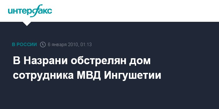 Ростов-на-Дону. 6 января. ИНТЕРФАКС-ЮГ -Домовладение майора МВД Ингушетии обстреляно неизвестными в Назрани в ночь на среду.