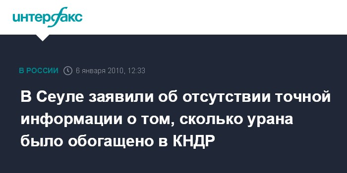 Сеул. 6 января. INTERFAX.RU - Северная Корея начала реализацию программы по обогащению урана, скорее всего, сразу после обещаний отказаться от ядерных амбиций, данных Пхеньяном американской стороне в 1994 году, сообщил в среду министр иностранных иностранных дел и внешней торговли Республики Корея Ю Мён Хван. Южнокорейская телерадиокомпания Кей-Би-Эс, цитируя интервью министра главному информационному агентству страны Ренхап, подчеркивает, что реализация программы началась еще до 1996 года. В то же время, по словам южнокорейского министра, нет точной информации о том, сколько урана было обогащено и как далеко продвинулись северокорейские специалисты в этой области. Причиной утверждений о том, что программа по обогащению урана началась еще во второй половине 90-х годов, является наличие у Северной Кореи более высокого уровня военных и ядерных технологий, чем предполагалось ранее.