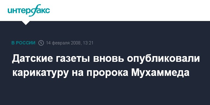 Копенгаген. 14 февраля. INTERFAX.RU - Одна из карикатур на пророка Мухаммеда, вызвавшая протесты и акты насилия в мусульманском мире в 2005 году, вновь появилась на страницах датских газет.
