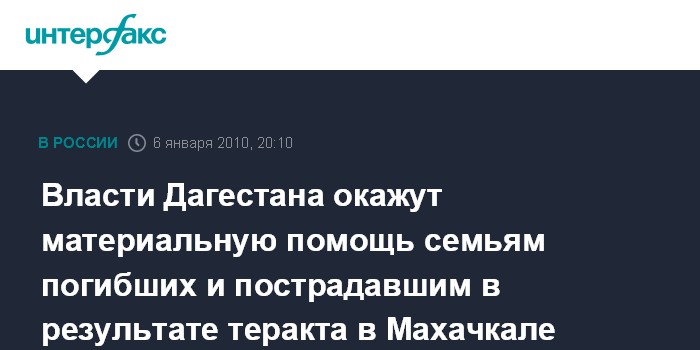 Власти Дагестана окажут материальную помощь семьям погибших и пострадавшим в результате теракта в Махачкале
