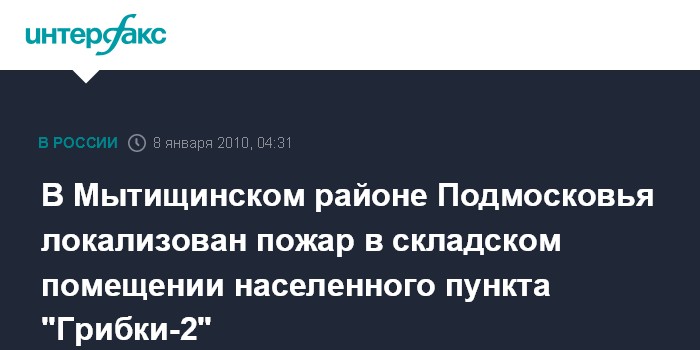 Москва. 8 января. ИНТЕРФАКС-МОСКВА - В Мытищинском районе Московской области, в поселке "Грибки-2" в пятницу утром произошло возгорание в ангаре, где хранятся металлические изделия, сообщила "Интерфаксу" сотрудник пресс-службы Центрального регионального центра МЧС РФ Людмила Мартынова.