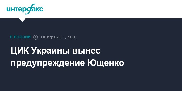 Киев. 9 января. ИНТЕРФАКС-УКРАИНА - ЦИК вынес предупреждение кандидату в президенты Украины Виктору Ющенко за использование эфирного времени на телеканале УТ-1, отведенного ему для освещения своей деятельности как действующего главы Украины, для предвыборной агитации.