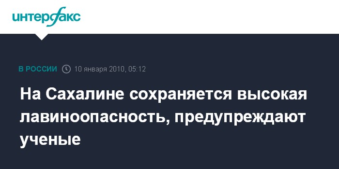 Как сообщил агентству "Интерфакс-Дальний Восток" руководитель сахалинского филиала Дальневосточного геологического института (ДВГИ) ДВО РАН Николай Казаков, в ночь на 6 января в черте поселка Чехов Томаринского района (юго-западное побережье Сахалина - ИФ) сошла лавина объемом 1,5 тыс. куб. м.