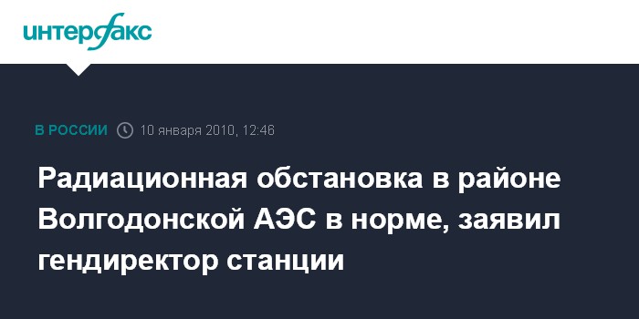 Ростов-на-Дону. 10 января. INTERFAX.RU - Инцидент на Волгодонской АЭС, произошедший в воскресенье утром, не привел к ухудшению радиационной обстановки на станции и за ее пределами, сообщил агентству "Интерфакс-Юг" генеральный директор АЭС Александр Паламарчук. "Ситуация на атомной станции в норме и находится под контролем, радиационная обстановка в норме и соответствует радиационному фону", - отметил А.Паламарчук.
