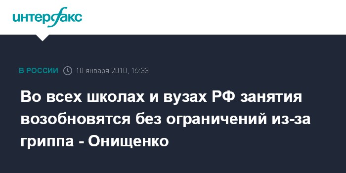 Во всех школах и вузах РФ занятия возобновятся без ограничений из-за гриппа - Онищенко