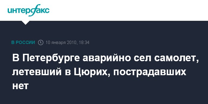 В Петербурге аварийно сел самолет, летевший в Цюрих, пострадавших нет