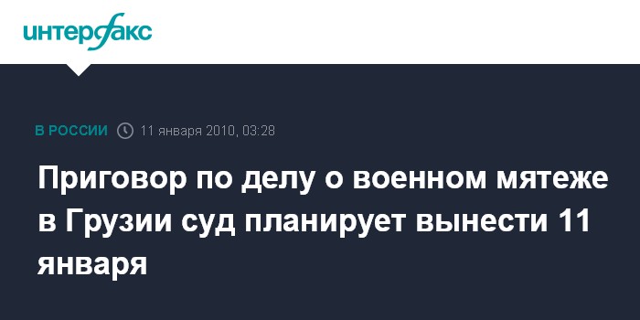 Тбилиси. 11 января. ИНТЕРФАКС - Приговор обвиняемым по делу о военном мятеже 5 мая 2009 года на Мухрованской базе Минобороны Грузии будет вынесен Тбилисским городским судом в понедельник, 11 января.