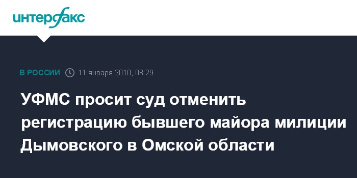 УФМС просит суд отменить регистрацию бывшего майора милиции Дымовского в Омской области