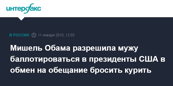 Мишель Обама разрешила мужу баллотироваться в президенты США в обмен на обещание бросить курить
