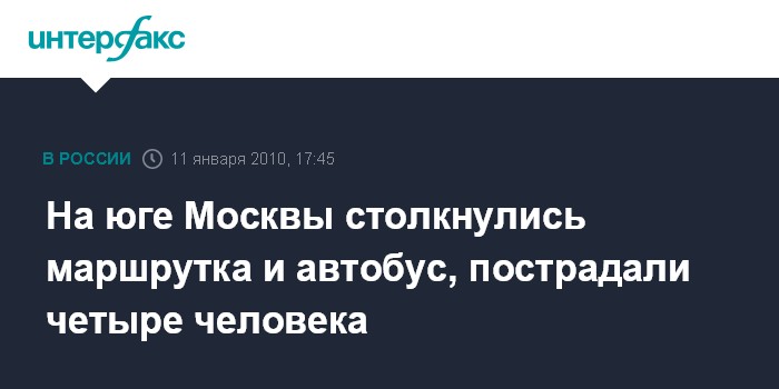 Москва. 11 января. INTERFAX.RU - В Южном административном округе Москвы в понедельник столкнулись маршрутное такси и рейсовый автобус, сообщил "Интерфаксу" источник в правоохранительных органах.