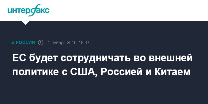 ЕС будет сотрудничать во внешней политике с США, Россией и Китаем