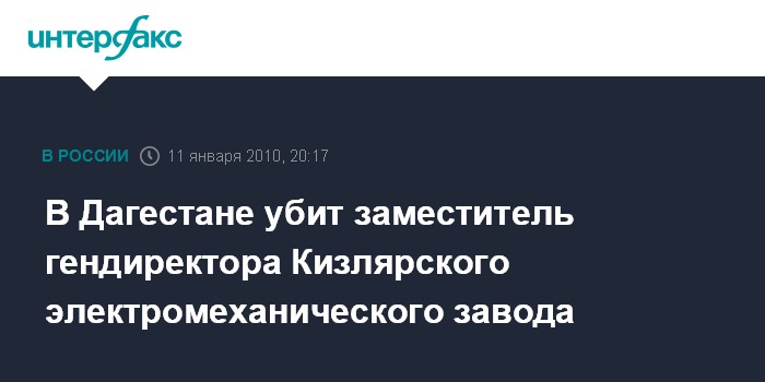 В Дагестане убит заместитель гендиректора Кизлярского электромеханического завода