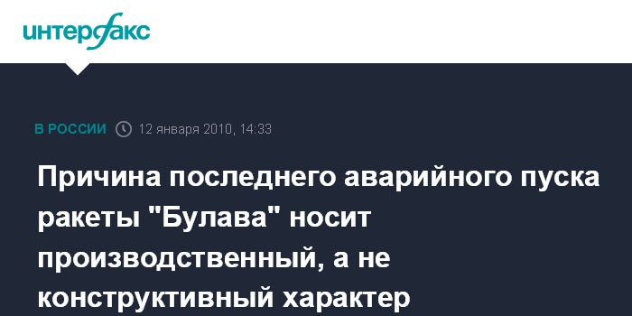 Причина последнего аварийного пуска ракеты "Булава" носит производственный, а не конструктивный характер