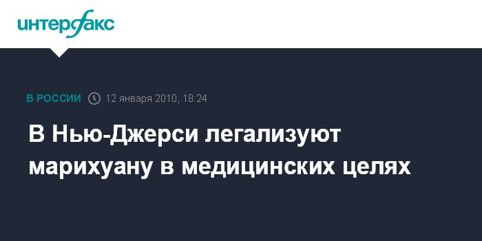 Вашингтон. 12 января. INTERFAX.RU - Законодатели из штата Нью-Джерси на востоке США одобрили легализацию марихуаны для использования наркотика в помощь хронически больным людям, сообщила во вторник американская газета New York Times.
