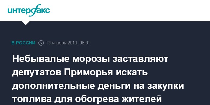 Владивосток. 13 января. ИНТЕРФАКС-ДАЛЬНИЙ ВОСТОК - На январском заседании Законодательного собрания Приморья депутаты намерены поставить вопрос о корректировке бюджета на 2010 год, так как небывалые морозы, не покидающие край уже около месяца, истощают запасы топлива.
