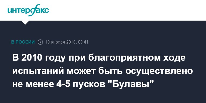 В 2010 году при благоприятном ходе испытаний может быть осуществлено не менее 4-5 пусков "Булавы"