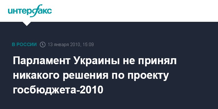 Москва. 13 января. INTERFAX.RU - Верховная Рада не приняла никакого решения по законопроекту о государственном бюджете на 2010 год.