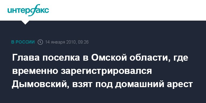 Глава поселка в Омской области, где временно зарегистрировался Дымовский, взят под домашний арест