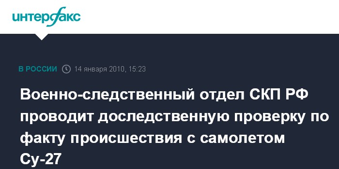 Военно-следственный отдел СКП РФ проводит доследственную проверку по факту происшествия с самолетом Су-27