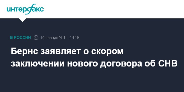 Москва. 14 января. INTERFAX.RU - Россия и США находятся накануне подписания нового договора об СНВ, заявил замгоссекретаря США Уильям Бернс, находящийся в Москве для переговоров с российским руководством.