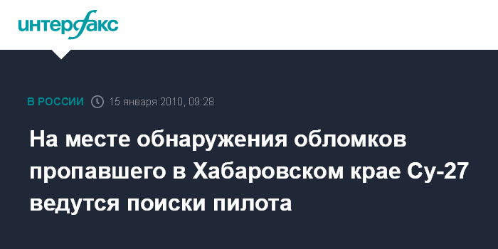 Москва. 15 января. INTERFAX.RU - Поиски пилота ведутся на месте обнаружения в Хабаровском крае обломков пропавшего самолета Су-27, сообщили агентству "Интерфакс - Дальний Восток" в управлении пресс-службы и информации Минобороны РФ.