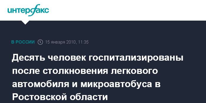 Москва. 15 января. INTERFAX.RU – В Ростовской области на 77-м км автотрассы Ростов-Ставрополь утром в пятницу столкнулись автомобиль ВАЗ-2115 и микроавтобус "Хундай".